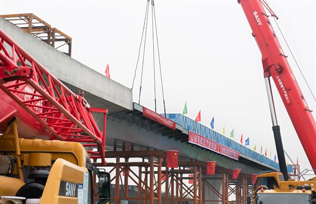 為確保首聯(lián)鋼箱梁精準(zhǔn)安裝,建設(shè)單位山西航產(chǎn)集團(tuán)聯(lián)合施工單位中鐵大橋局集團(tuán)科學(xué)組織、精心謀劃,克服施工作業(yè)面有限、運(yùn)輸距離遠(yuǎn)等困難,圍繞安全質(zhì)量管控、人材機(jī)調(diào)配等細(xì)節(jié)問(wèn)題,多次組織設(shè)計(jì)、監(jiān)理、生產(chǎn)廠家等單位召開(kāi)技術(shù)方案討論會(huì),研究分析施工重難點(diǎn),逐項(xiàng)梳理安全風(fēng)險(xiǎn)點(diǎn),細(xì)化優(yōu)化各施工環(huán)節(jié)。正式吊裝前,對(duì)施工人員進(jìn)行詳細(xì)的安全、技術(shù)、質(zhì)量交底,嚴(yán)格落實(shí)檢查制度,進(jìn)行“一吊一檢”,確保吊裝過(guò)程平穩(wěn)有序,順利實(shí)現(xiàn)首聯(lián)鋼箱梁成功吊裝。